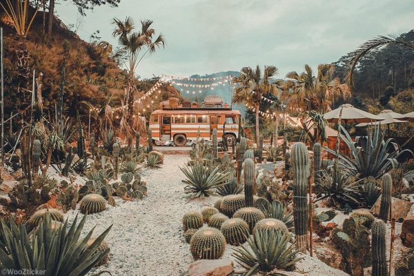 Nếu muốn đổi gió với khung cảnh hoang dã, Kombi Land sẽ mang đến cho bạn trải nghiệm như lạc vào vương quốc xương rồng giữa cao nguyên. Quán café kết hợp khu tham quan này nằm ở đèo Mimosa, cách trung tâm ~10km, nổi tiếng với hàng trăm cây xương rồng đủ loại được bài trí khắp nơi. Ngay từ cổng vào, hình ảnh chú robot vàng cam (lấy cảm hứng từ Bumblebee trong phim Transformers) “chào đón” du khách tạo điểm nhấn độc đáo. Bước vào Kombi Land, bạn sẽ thích thú trước những cụm xương rồng cao lớn, những chiếc xe cổ, tivi cũ, radio vintage… được sắp đặt giữa khung cảnh cát sỏi, tái hiện một không gian vừa hoang dại, vừa hoài cổ lãng mạn. Chiếc xe buýt VW màu vàng đậu giữa “sa mạc” xương rồng là góc sống ảo được ưa chuộng – bạn có thể leo lên nóc xe, xung quanh chậu xương rồng trang trí, tha hồ tạo dáng chất lừ. Sau khi chụp ảnh, đừng quên ghé khu nhà kính gọi một tách cà phê trứng hoặc nước ép cactus mát lạnh và ngắm cảnh. Kombi Land thực sự là “ốc đảo” khác lạ giữa Đà Lạt mộng mơ, nơi đem đến hàng trăm góc chụp ảnh độc lạ cho giới trẻ.