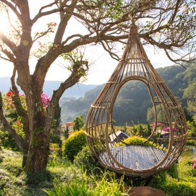 Nằm trên đèo Tà Nung (gần cà phê Mê Linh), Dalaland được mệnh danh là “tiểu Bali giữa lòng Đà Lạt”. Khu phức hợp này có diện tích rộng, bài trí nhiều tiểu cảnh check-in kiểu Bali giữa thiên nhiên: nào là xích đu bay giữa không trung, tổ chim khổng lồ, cổng trời Bali thứ hai, giường lưới trên cao nhìn ra thung lũng… Từng góc nhỏ ở Dalaland đều có thể trở thành background ảo diệu khiến bạn ngỡ như đang du lịch Bali thực sự. Ngoài ra, Dalaland còn kết hợp dịch vụ lưu trú dạng homestay bungalow và quán cafe, thuận tiện cho du khách nghỉ qua đêm “săn mây” sáng sớm.